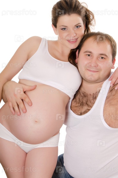 Мужчина и беременная женщина на белом фоне