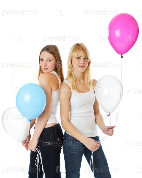 Две девочки с шариками, изолированные на белом фоне