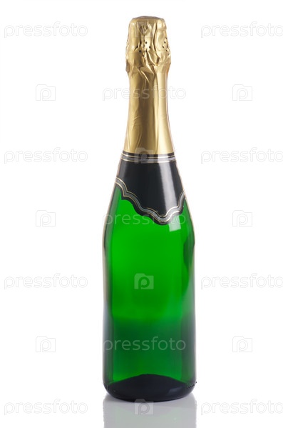 Бутылка шампанского на белом фоне