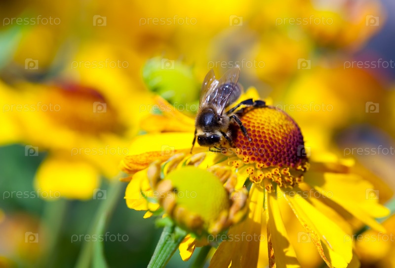 Пчела на желтом цветке