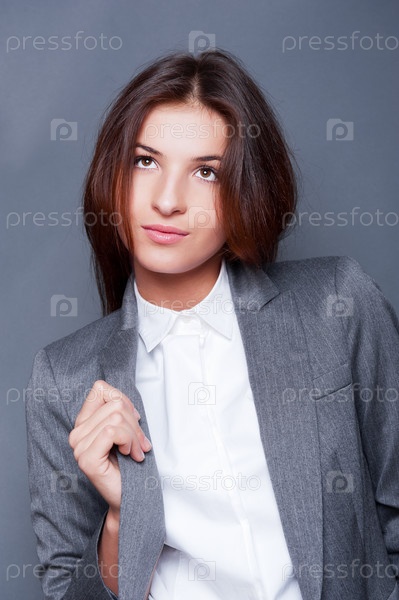Красивая молодая девушка в сером пиджаке