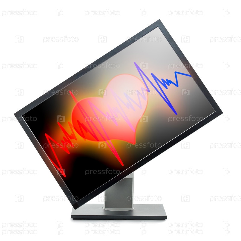 Компьютерный монитор с сердцем и пульсом на экране