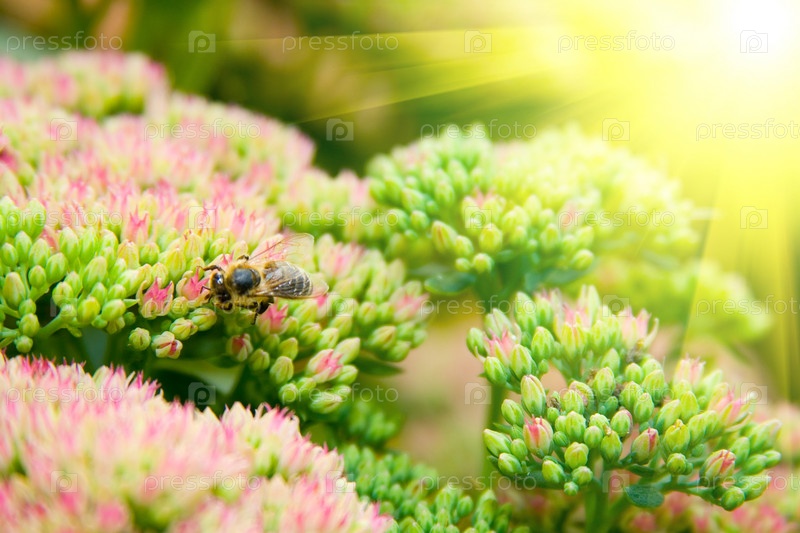 Цветы и пчела под ярким солнцем