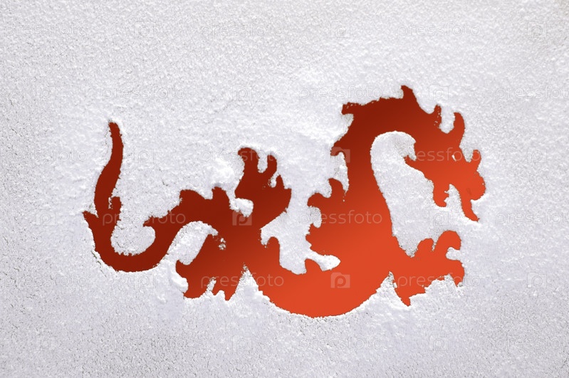 Оранжевый дракон на замороженном окне