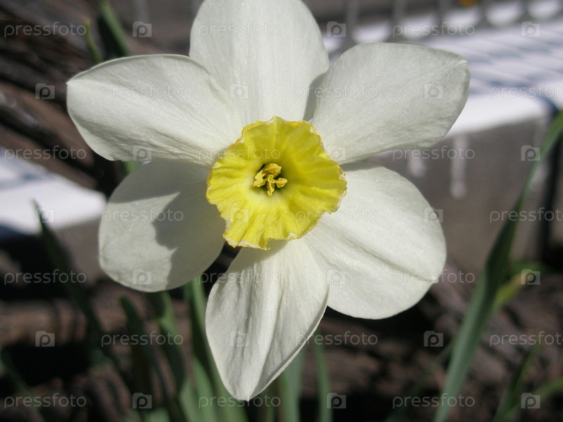 Нарцисс - бело-желтый цветок, распускающийся в саду весной
