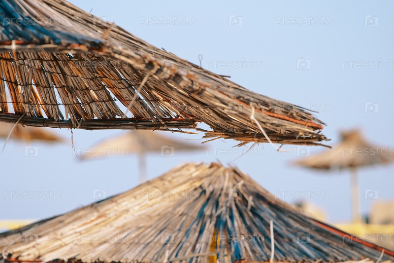 Соломенные зонтики на пляже в Болгарии