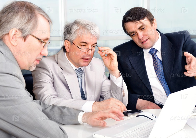 Группа бизнесменов в офисе за компьютером