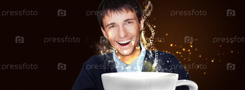Молодой человек пьет кофе