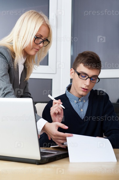 Молодые симпатичные деловые люди работают в офисе