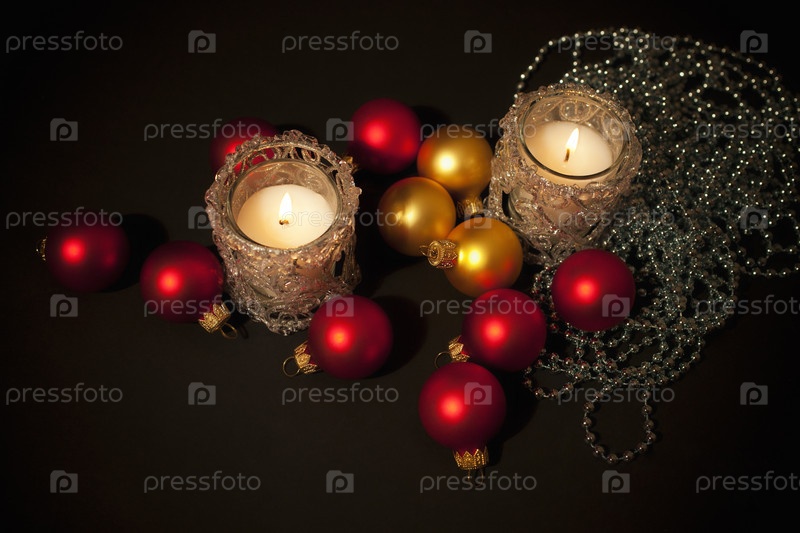 Рождественские украшения и свечи на черном фоне