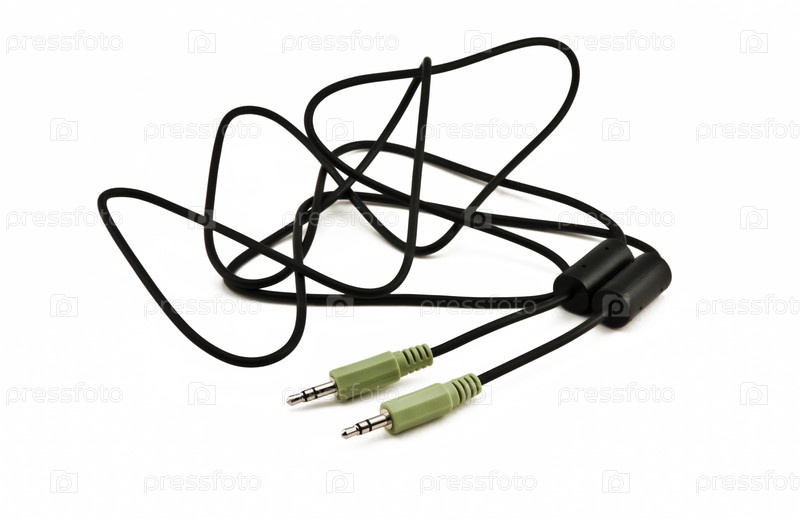 Стандартный аудиокабель на белом фоне