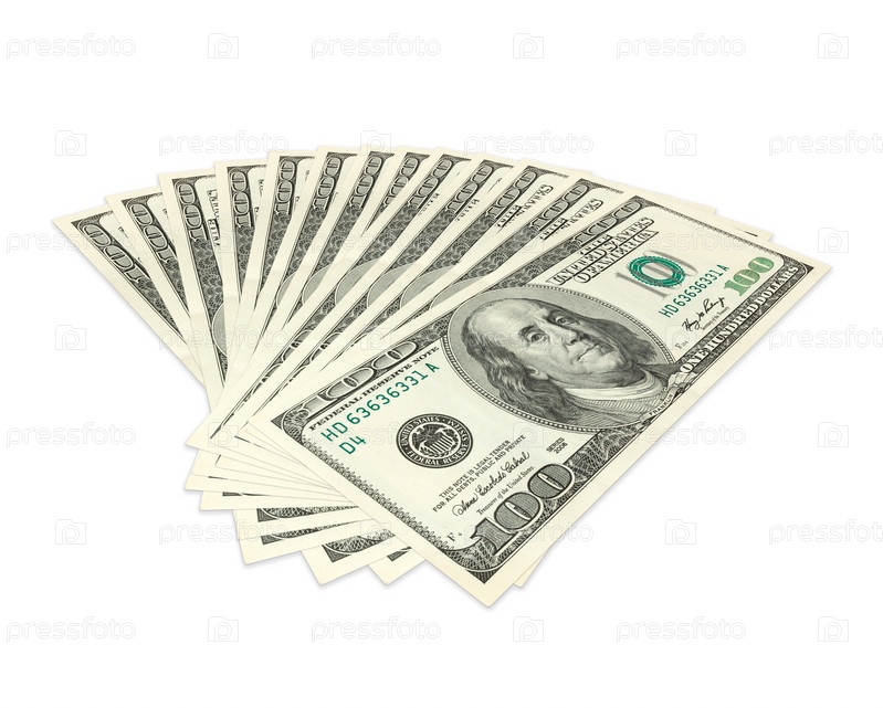 Долларовые банкноты на белом фоне
