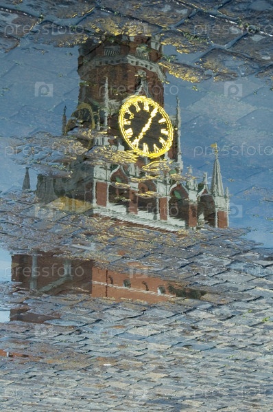 Кремль, отражающийся в лужах