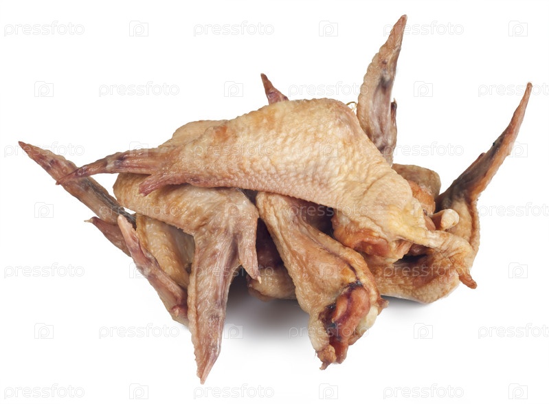 Копченые куриные крылышки на белом фоне
