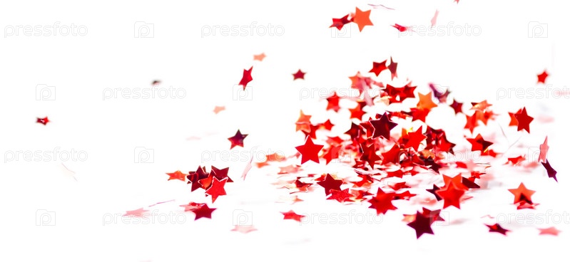 Красные конфетти на белом фоне