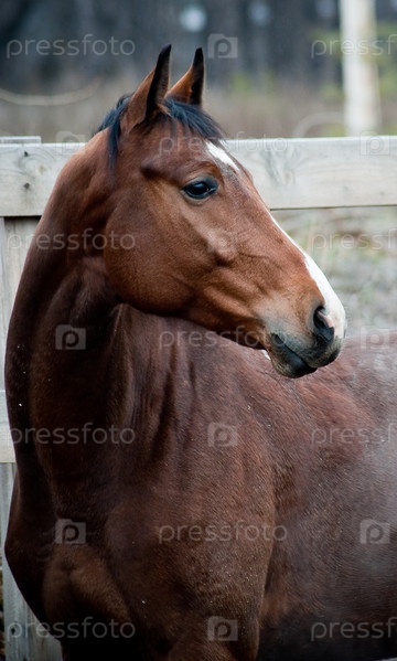 Красивый конь в загоне