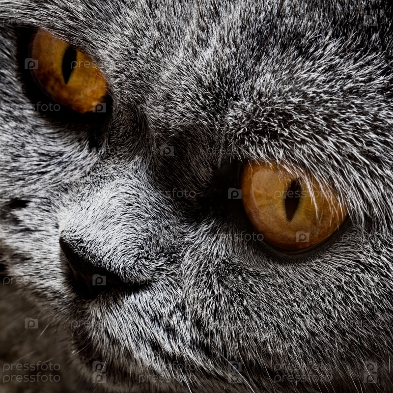 Морда серого британского кота крупным планом