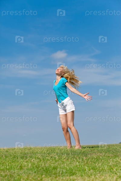 Счастливая молодая женщина в поле