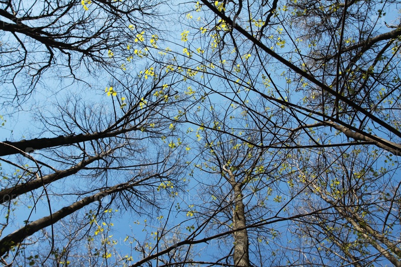 Ранняя весна, кроны деревьев с молодыми листьями
