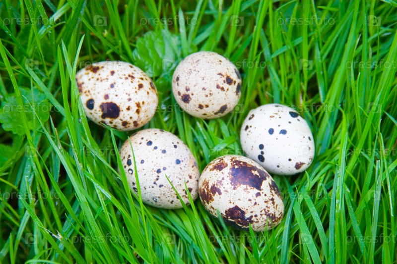 Перепелиные яйца на зеленой траве