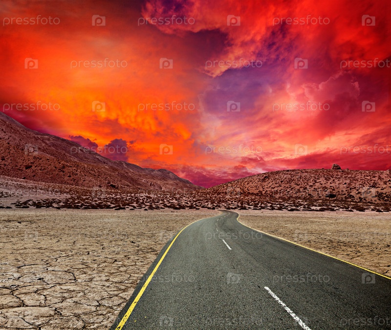 Дорога в пустыне на закате солнца
