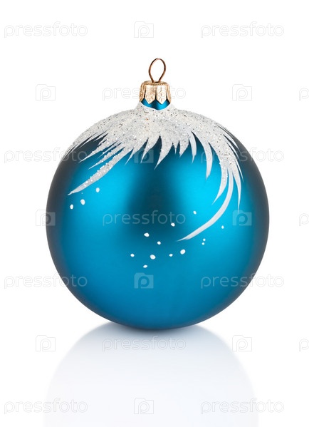 Новогоднее елочное украшение - синий шар, изолирован на белом фоне