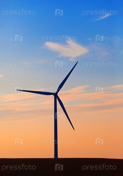 Силуэт ветряного двигателя на фоне заката