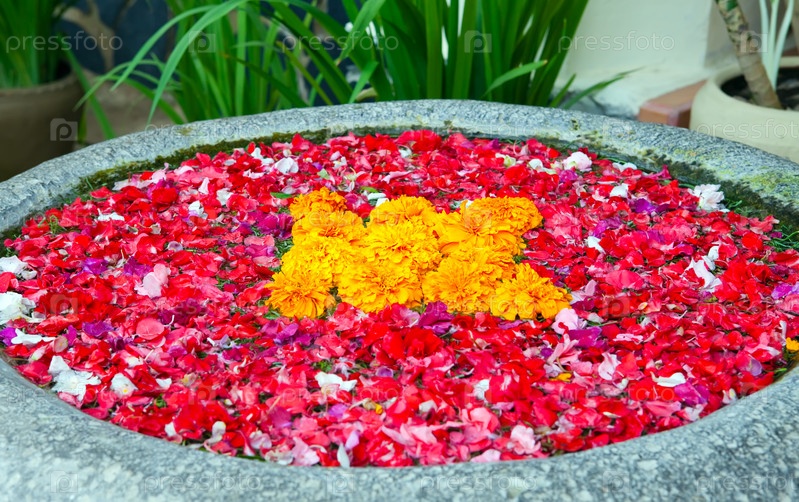 Уличная чаша, украшенная цветочными лепестками