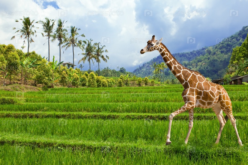 Жираф на поле