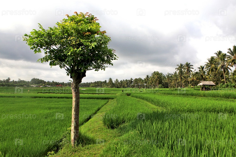 Дерево на рисовом поле