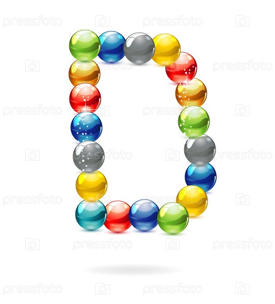 Веб-символ.Буква 'D' из разноцветных шариков.Изолированная на белом фоне