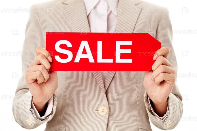 Знак с надписью SALE в руках