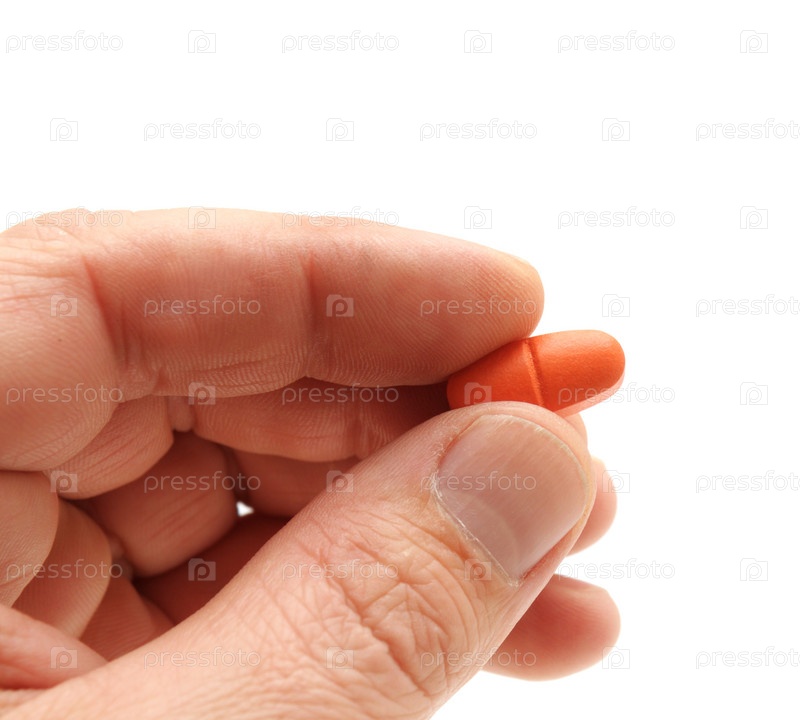 Таблетки в руке изолированные на белом фоне