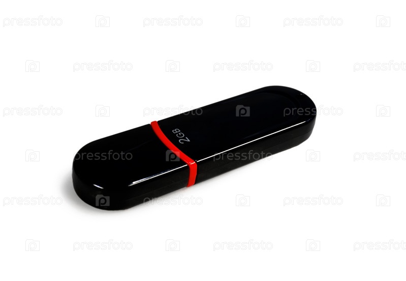 Черный флеш-диск USB с красной полосой в центре и надписью 2 GB