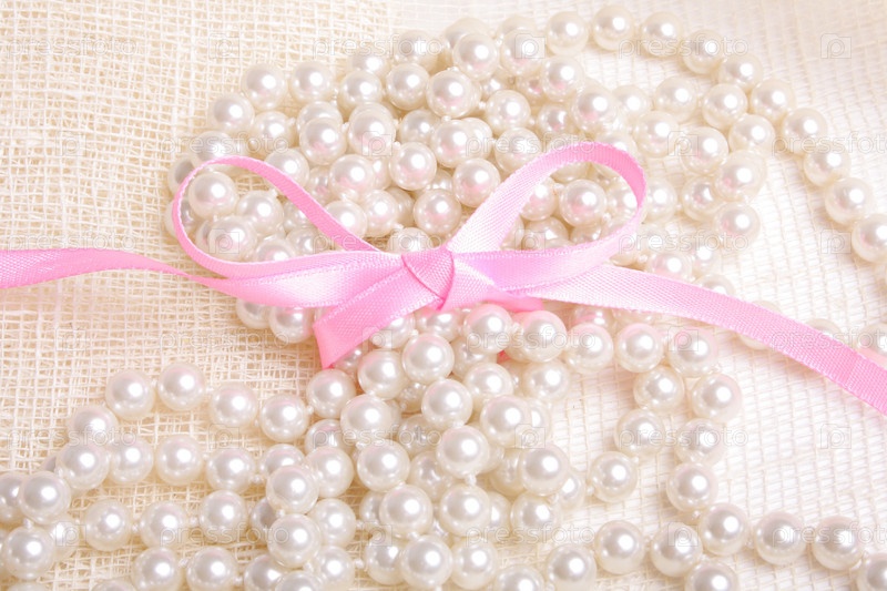 Перламутровые бусы и розовая ленточка