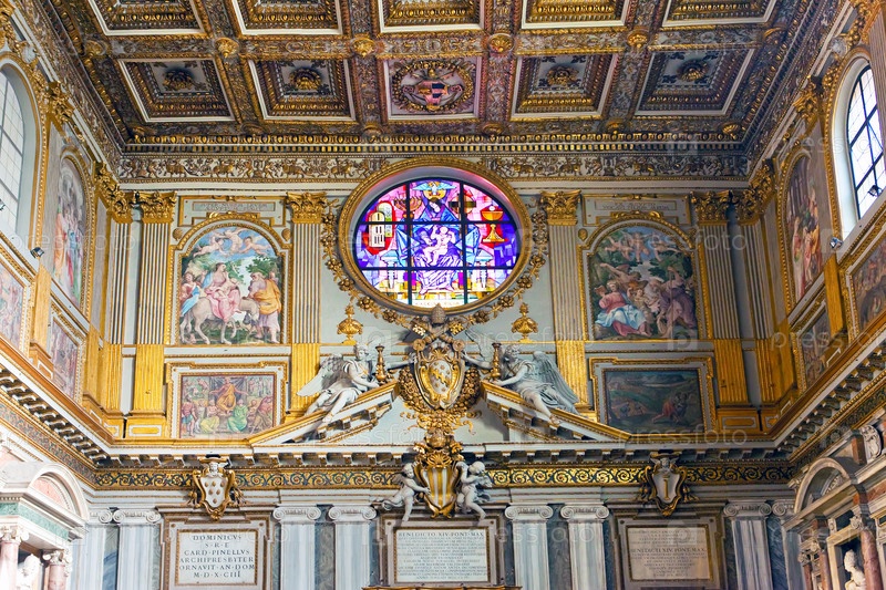 Витражное окно и расписанные стены в церкви Санта Мария Маджоре