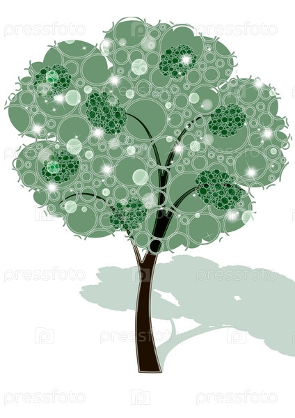 Зеленое дерево на белом фоне, илюстрация