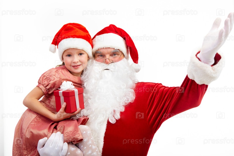 Санта-Клаус с маленькой девочкой на руках