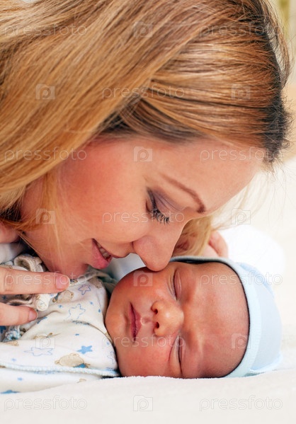 Мама с младенцем крупным планом