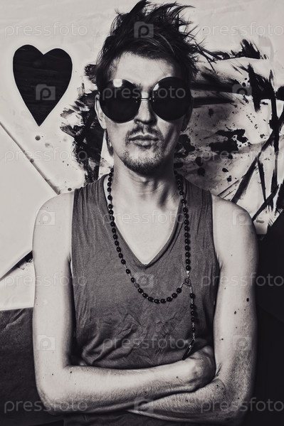 Портрет молодого панка в круглых солнцезащитных очках