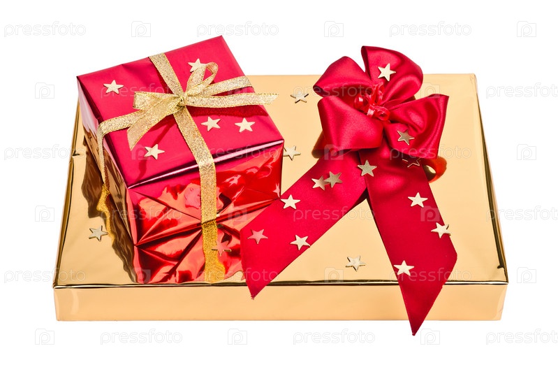 Подарочные коробки с бантами, изолированные на белом фоне