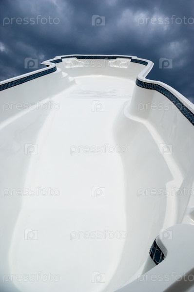 Пустая акриловая ванна на фоне пасмурного неба