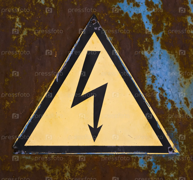 Знак «высокое напряжение» на фоне ржавых металлических поверхностей