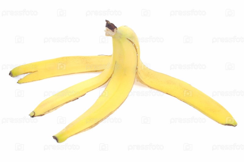 Банановая кожура на белом фоне