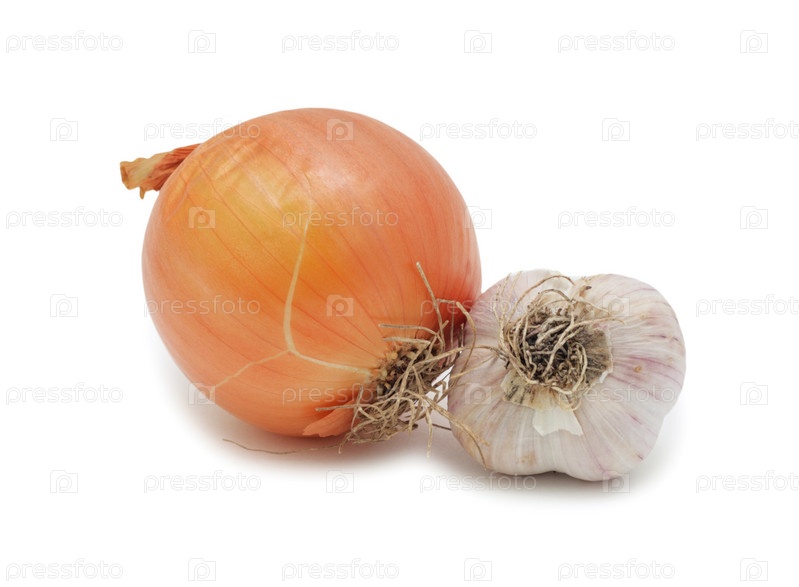 Чеснок и лук на белом фоне