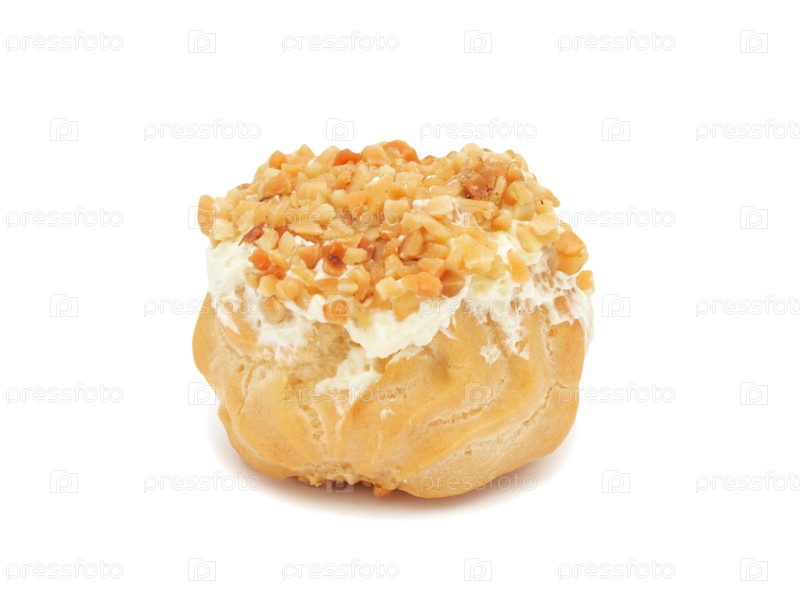 Пирожное с ореховой крошкой на белом фоне