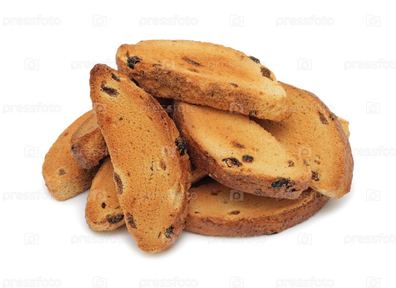 Сухари с изюмом на белом фоне