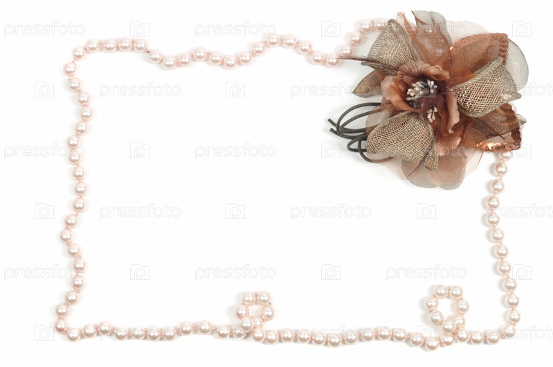 Рамка из жемчужных бус на белом фоне