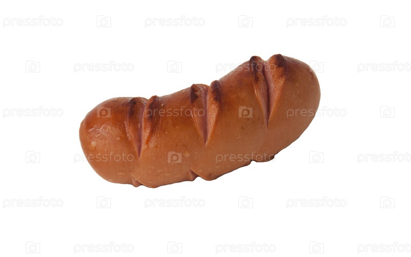 Жареная сарделька на белом фоне, изолированна