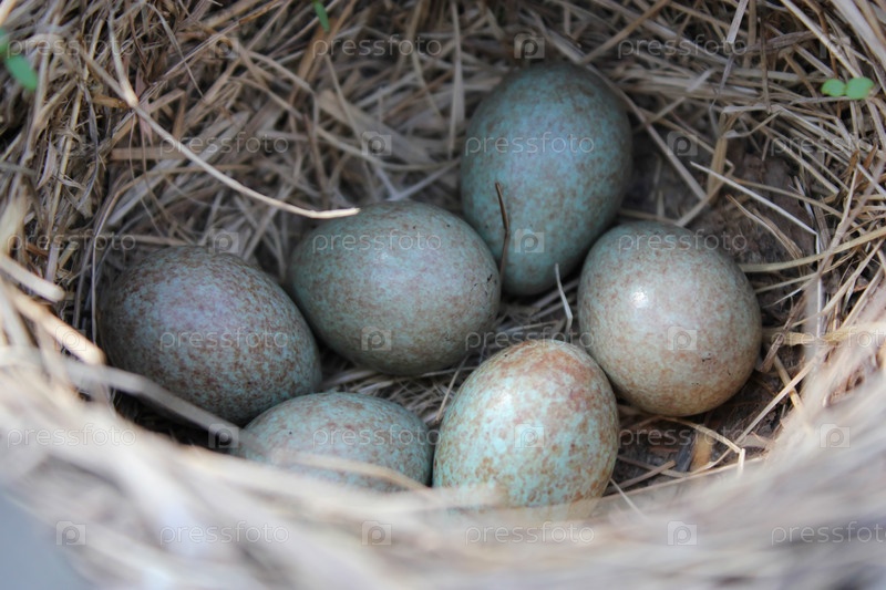 Голубые яйца в гнезде